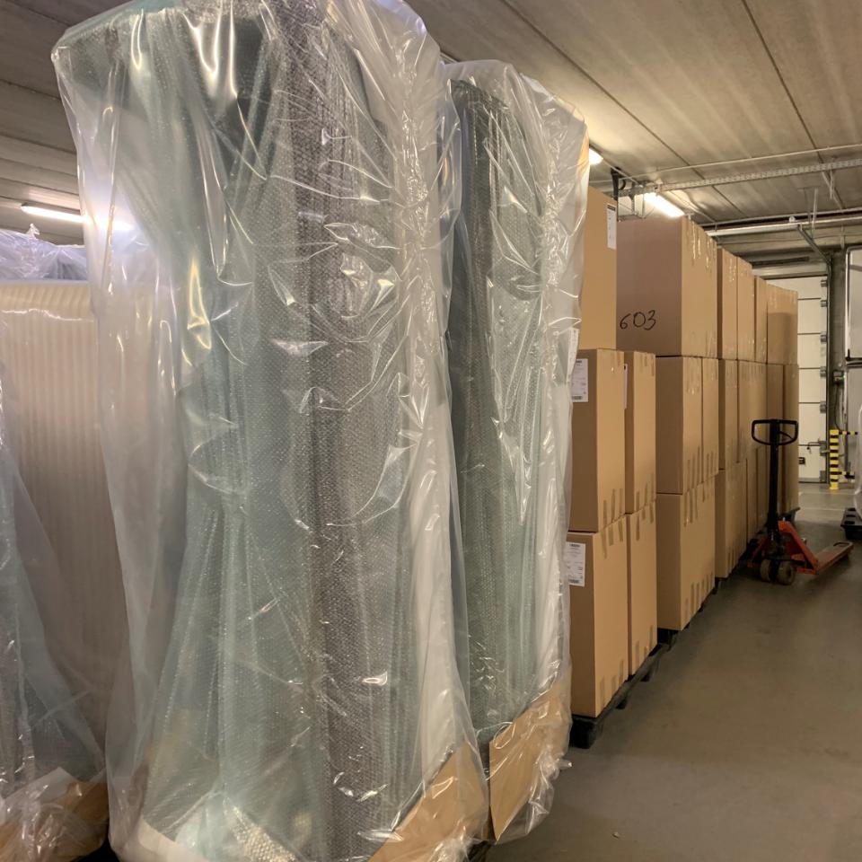 We are also proudly using the majority of our plastic materials from recycled materials fx. Our bubble wrap, PE foam and packaging corners have up to 100% recycled content. Additionally, we are phasing out Styrofoam in all new product packaging.